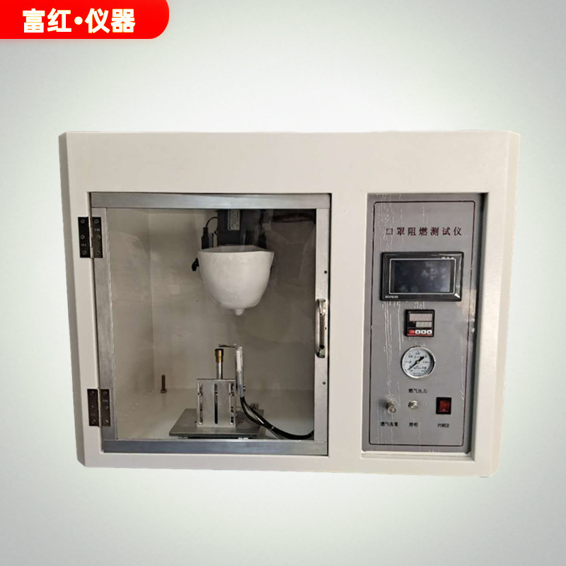 1.F149醫(yī)用口罩阻燃性測試儀的測試原理是將口罩試樣模擬實際使用狀態(tài)安裝到頭模樣架上,口罩隨頭模以一定的線速度掠過火焰高度恒定的點火器的上方,觀察口罩燃燒情況,記錄續(xù)燃和陰燃時間,以此評定口罩是否合格。